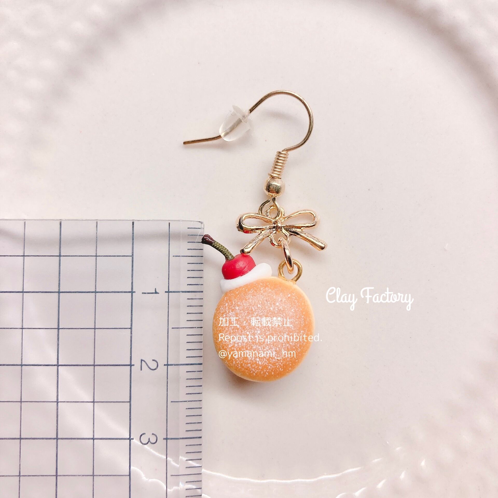 チェリーが乗った生ドーナツのピアス・イヤリング