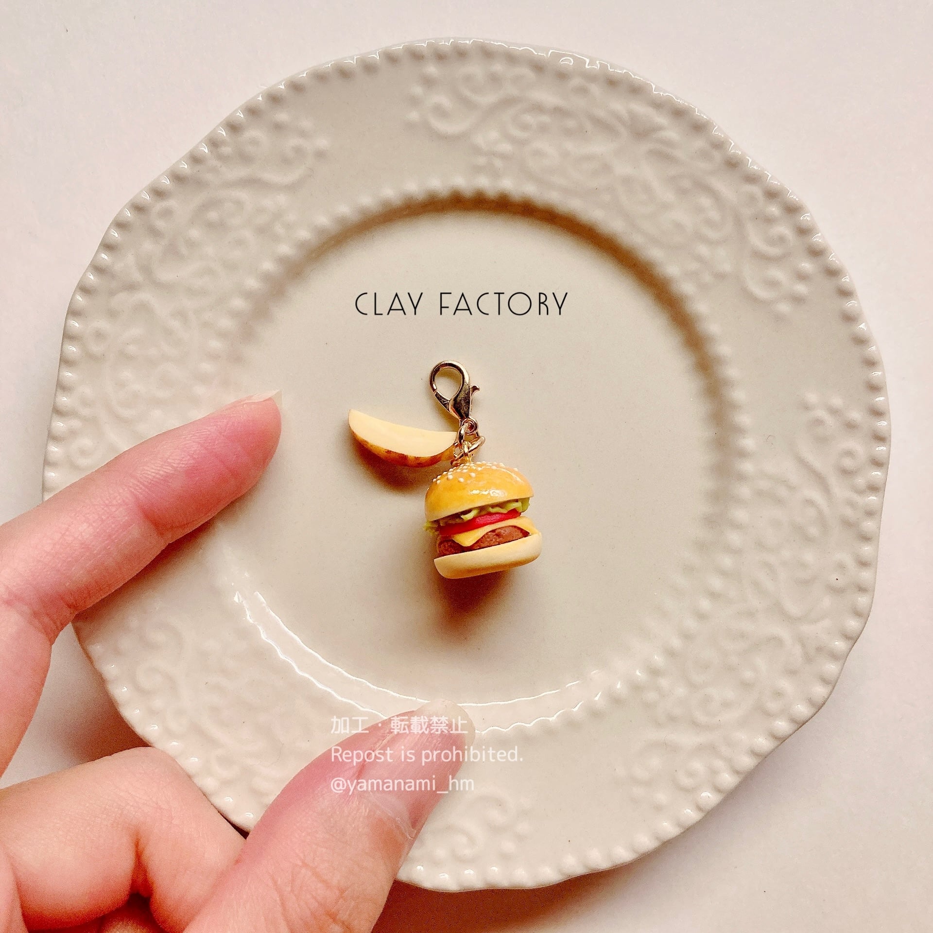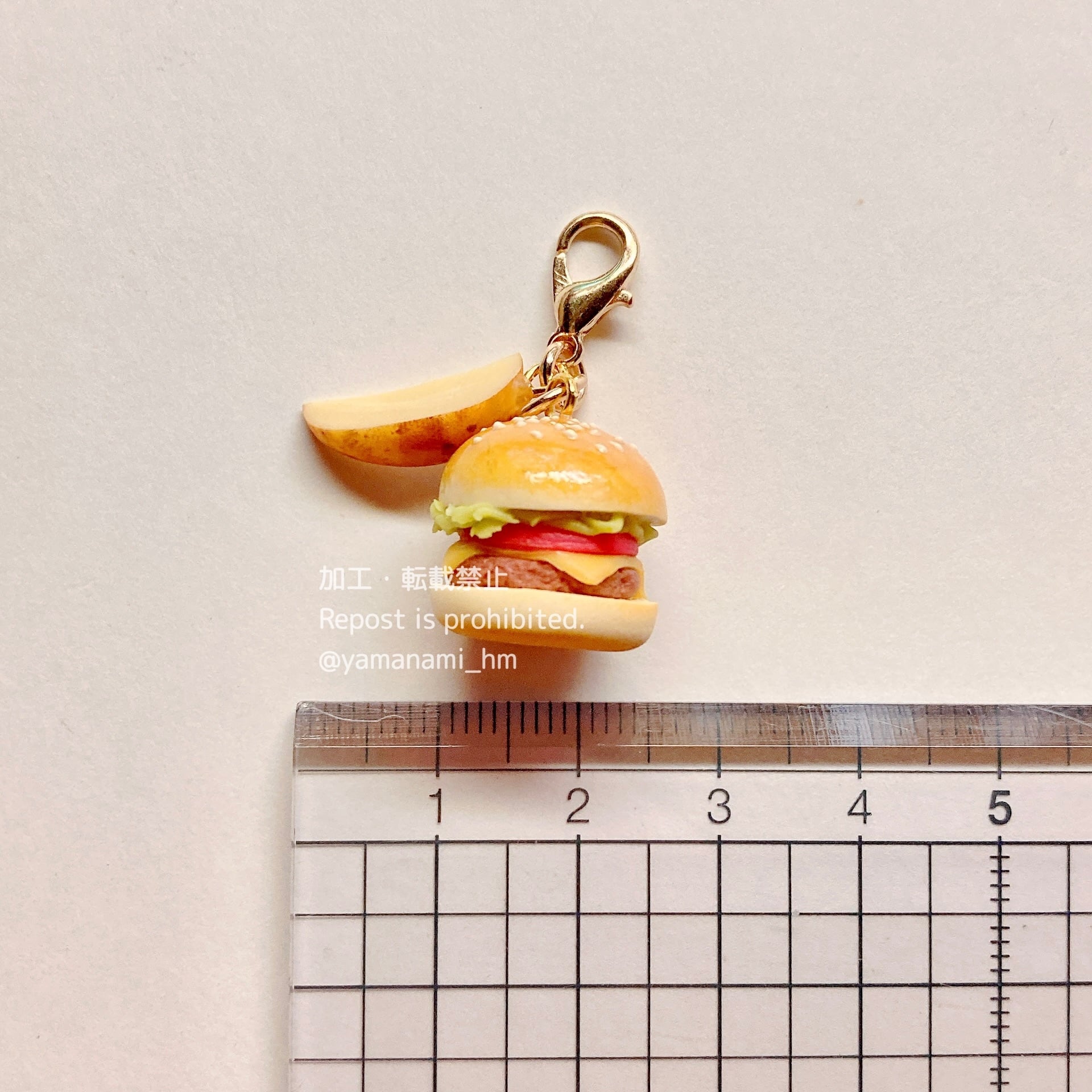 ハンバーガーにポテトがゆらゆら可愛いミニチュアチャーム。